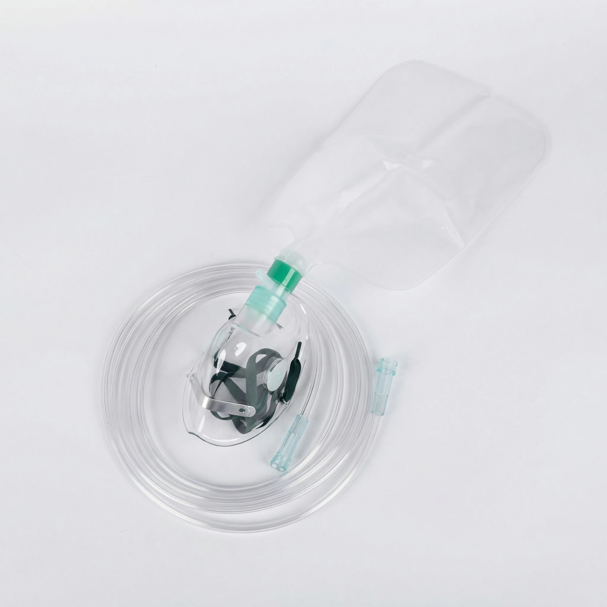 Fabricada em PVC atóxico, transparente e macio, adapta-se facilmente ao contorno facial, proporcionando vedação adequada e permitindo monitoramento visual durante o uso.